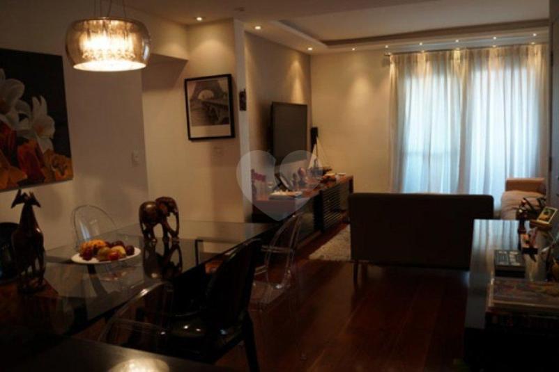 Localizado em rua privada e sem saída, 100 metros quadrados - Todo Reformado, piso de madeira, 3 quartos, sendo uma suíte e um mobiliado versão escritório todos com armário embutido - Armário de Cozinha, com acabamento de primeira linha, em Gofato e vidro. Cozinha estilo Americana - Open Concept integrada com a sala, banheiros porcelanato. Lavabo e sacada fechada com vidro articulado. Papel de parede no hall, nos quartos e sala. Ampla lavanderia com banheiro de empregada. 2 vagas na garagem. mais 2 vagas opcionais - venda separada, valor sob consulta.'''
