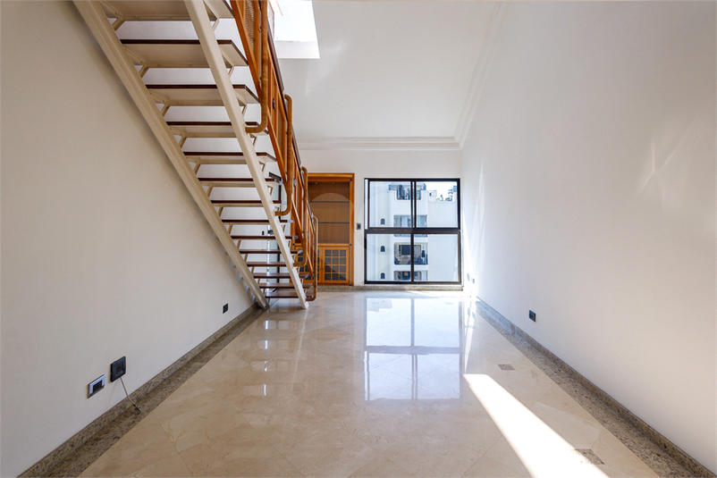 Cobertura Duplex à venda em Moema, com 240 metros bem distribuídos. No andar de baixo temos o living para 3 ambientes com piso em mármore, varanda, 3 dormitórios sendo 1 suíte, cozinha, área serviço com quarto e banheiro de funcionário. Escada de madeira viga dupla, vazada leva andar de cima com amplo mezanino e banheiro completo com sauna. Na área externa um esspaço lazer com piscina e churrasqueira. O condomínio é super bem cuidado, rodeado por muito verde, inclusive uma horta coletiva, academia, salão de festas, espaço gourmet, play, piscina aquecida, integram o lazer do Condomínio. Cobertura com 3 vagas de garagem. Segurança presencial 24 hrs