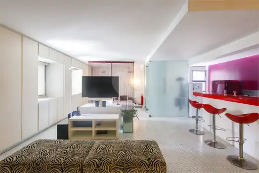 Apartamento com conceito aberto, todos os ambientes integrados, inclusive o quarto. Perfil de apartamento descolado, para pessoas que buscam uma harmonização e integração dos ambientes, arejado, varanda, sala para dois ambientes, cozinha americana, com duas vagas de garagem. Prédio com piscina e portaria 24 horas. Muito bem localizado, no coração dos Jardins. Para fazer absolutamente tudo a pé. Próximo a Casa Santa Luzia, Oscar Freire, bons restaurantes e toda a infraestrutura que o bairro oferece. Se você está buscando um apto na melhor localização de São Paulo e não pretende investir um valor expressivo para um apto com 2 vagas, essa é uma grande oportunidade! Agende já uma visita!