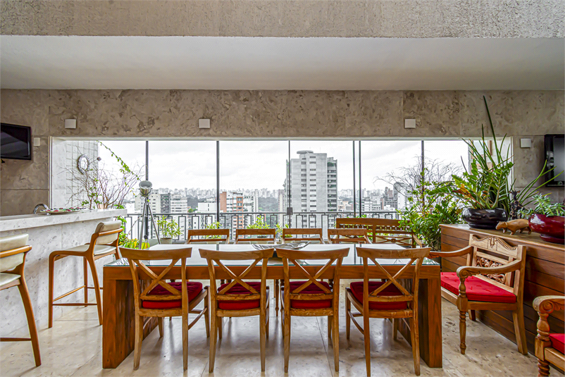 Cobertura triplex situada em prédio neoclássico muito procurado, em excelente localização na Vila Nova Conceição. Localização privilegiada, conforto e exclusividade. Salas amplas integradas à varanda, 4 espaçosas suítes, sendo a master com closet generoso e banheiro Sr. e Sra. Elevador em todos os andares, churrasqueira, terraço, sala de TV. No último andar, conta com espaço gourmet, piscina e teto retrátil. São 9 vagas de garagem, depósito, ar-condicionado e dependência para funcionário. Próximo à Praça Pereira Coutinho e ao Parque Ibirapuera.