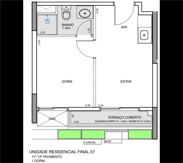 A unidade possui 27 m² de área privativa, distribuídos em 1 dormitório (suíte), 1 banheiro e ambiente inte...