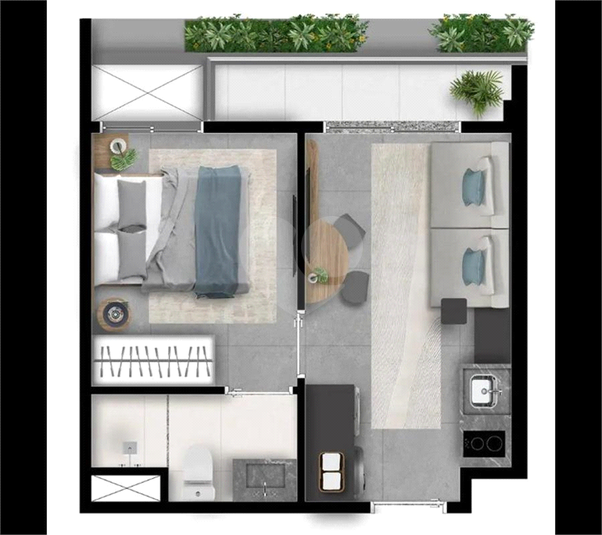 Studio na planta localizado no novo empreendimento Nex One Pereira Coutinho, com projeto moderno e alinhado às tendências de moradia urbana.