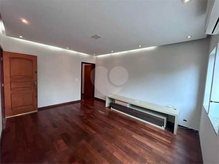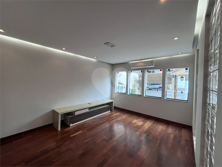 Ampla sala de estar com elegante piso em tábuas de madeira e ar condicionado, trazendo conforto e sofisticaçã...