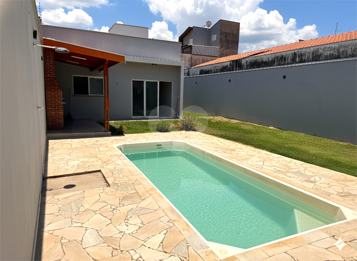 Casa térrea com piscina e amplo terreno.