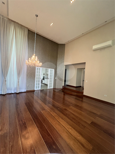 Essa casa tem uma fachada linda com jardim na frente, entrada com porta alta que combina com o p[e direito dessa sala imponente.