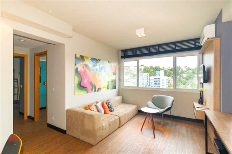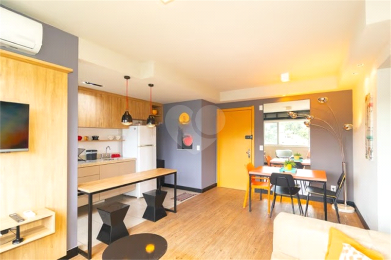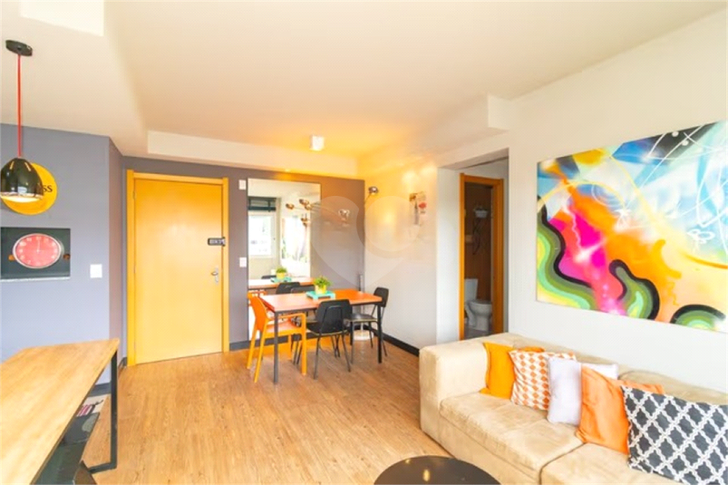 São 60 m² de área privativa, unidade mobiliada, com posição solar norte/oeste, proporcionando iluminação natural ao longo do dia. Living com sofá, m...