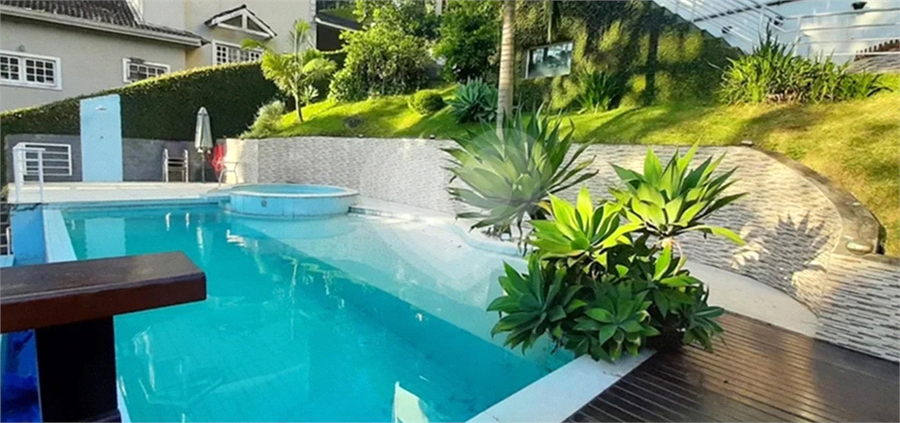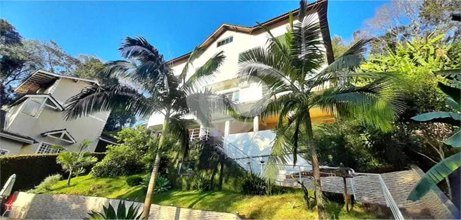Casa moderna no condomínio Alpes da Cantareira, na Serra da Cantareira, com 380m² de área construída em terreno de 1.200m². Ambientes amplos e integrados, sala com lareira e ar-condicionado e cozinha americana planejada.