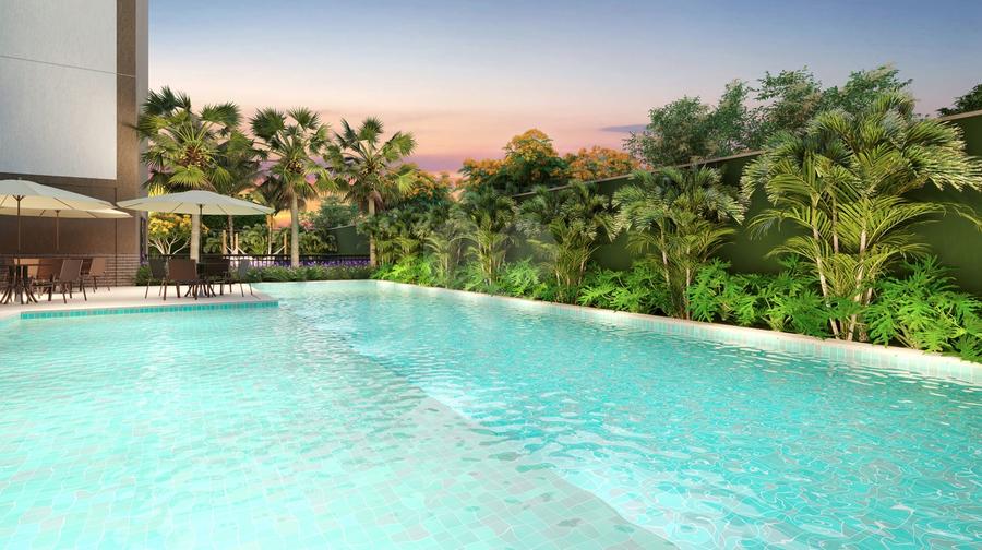 O M Lar Lago é um empreendimento no bairro Cambeba, com apartamentos de 63m² a 66m², distribuídos em 3 quartos, sendo 1 suíte com closet, varanda e 1 vaga de garagem.